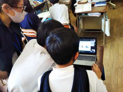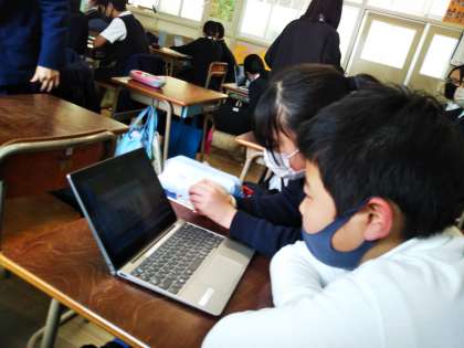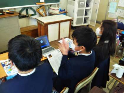 今日は、6時間目に6−1がTeamsで上福島小の6年生と英語の交流をしました。