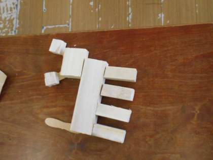 「トントンつないで」という題で、のこぎりやかなづちを使って、木切れを切ったり組み合わせたりして、作品をつくります。