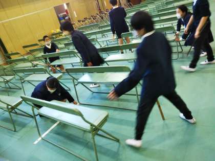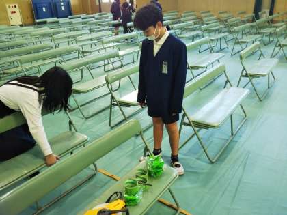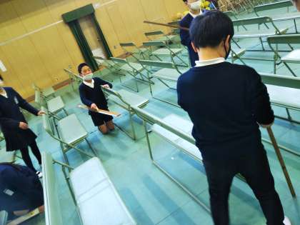 5年生が、卒業していく6年生のために会場の準備をしました。