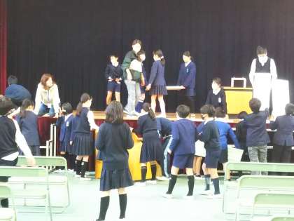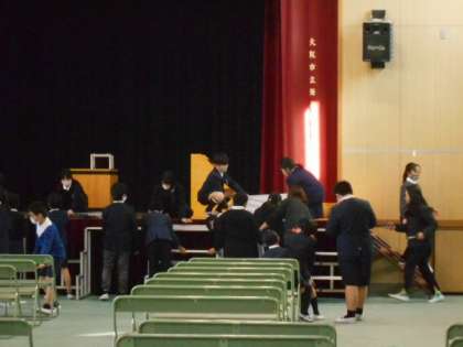 卒業生がよびかけを行うひな壇もしっかり組み立てていました。