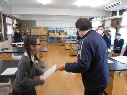 明日は、たくさん本を読んだ人の表彰と図工の優秀作品の表彰をお知らせします。