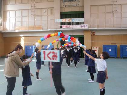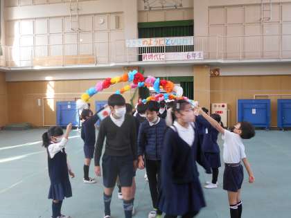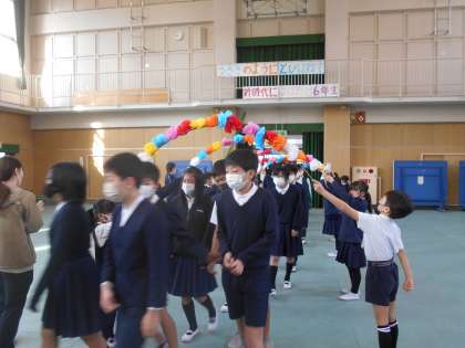 全校児童の拍手で迎える中、花道を通って6年生が入場しました。