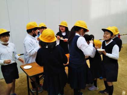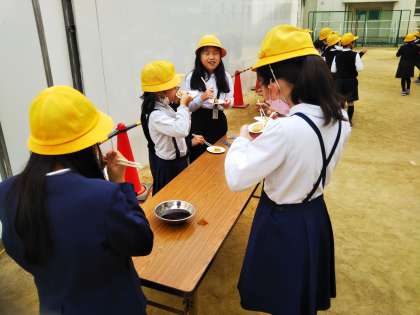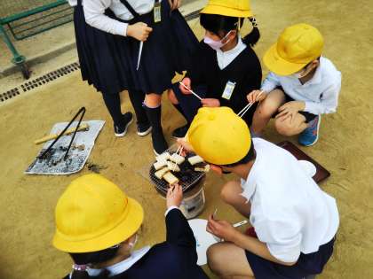地域のみなさんが作ってきたくださった「砂糖じょうゆ」をつけて、焼いたおもちをいただきました。