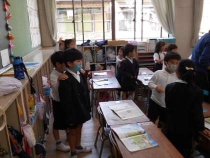 じゃんけんをして、かもつれっしゃになるあそびをしていました。