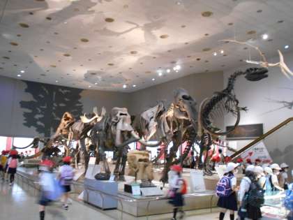 大きなクジラの骨格模型の下を通り、自然史博物館に入りました。