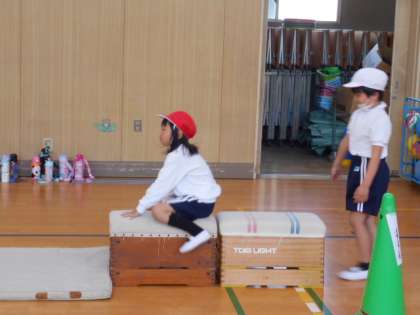 手で体を支えることで、体をとび箱から浮かせることや手でジャンプする感覚がわかってきます。