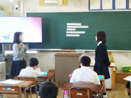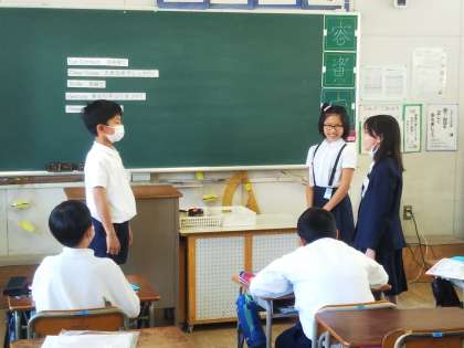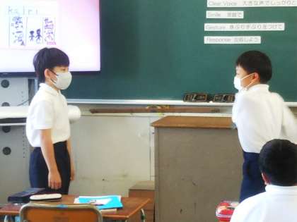 「あなたの好きな食べ物は?」「あなたの好きなスポーツは?」最後は3人で会話表現をしていました。