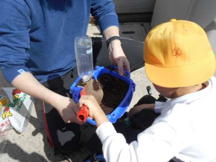 チューリップの球根をとったり、学習園の雑草を抜いていました。