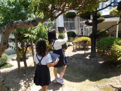 正門近くの梅の木に、梅の実がたくさんできていたり、いろいろな花が咲いていました。