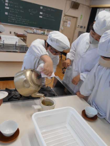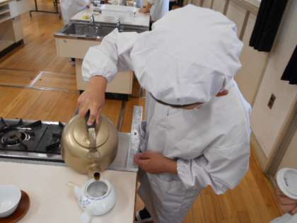 やけどをしないように急須にお湯を入れて、しばらく待ちます。