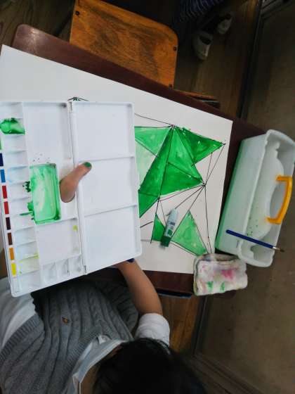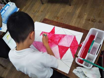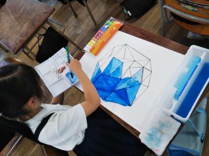 一つの色を使って、水の多い少ないで濃い薄いの塗分けをしています。
