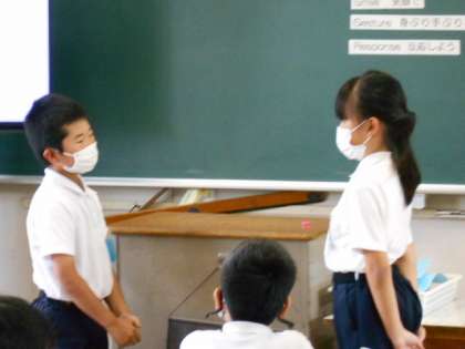 「身ぶり手ぶりをつける」「相手の目を見て」「大きな声ではっきりと」「笑顔で」などいろいろ気をつけることはありましたが、みんながんばっていました。