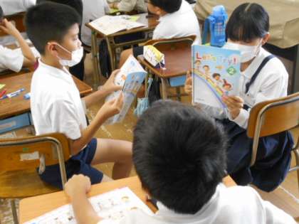 「〇曜日に○○をします」のような英語表現を練習しました。