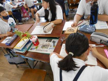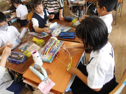 5−1は、各教科の英語表現の学習でした。体育はP.E、社会はSocialstudyなどで、絵カードを教科ごとに黒板に貼って目隠ししているうちに、どのカードがなくなったかを当てるゲームをしていました。