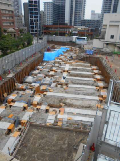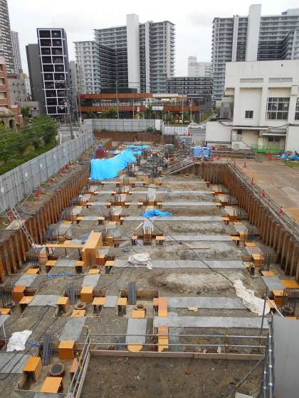 写真上は、6月8日(木)で、写真下は今日6月12日(月)の様子です。深く掘り下げて基礎の柱を作る準備をしているようです。少しわかりにくいですが、上下を比較してみてください。