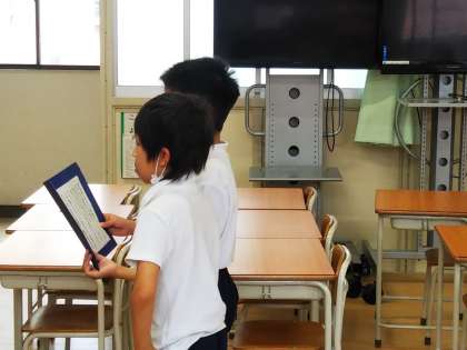 今日は、1時間目2時間目に、児童会の「夏の集会」がありました。