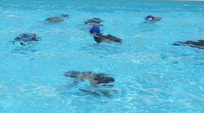 顔をつけられる、もぐれる、プールの底に手をつけるなどいろいろチャレンジしました。