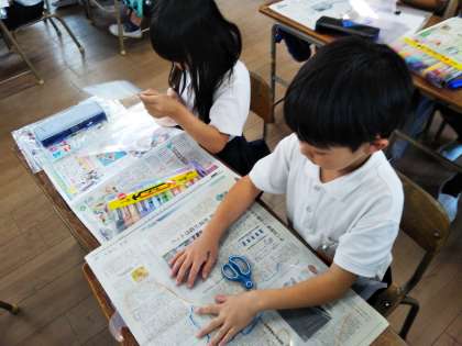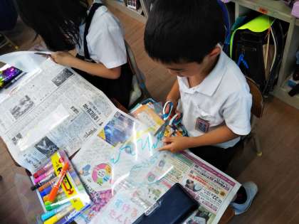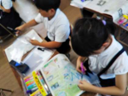 「とうめいファイルの大へんしん」というテーマで、透明ファイルを使って工作をしていました。