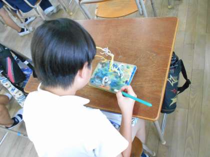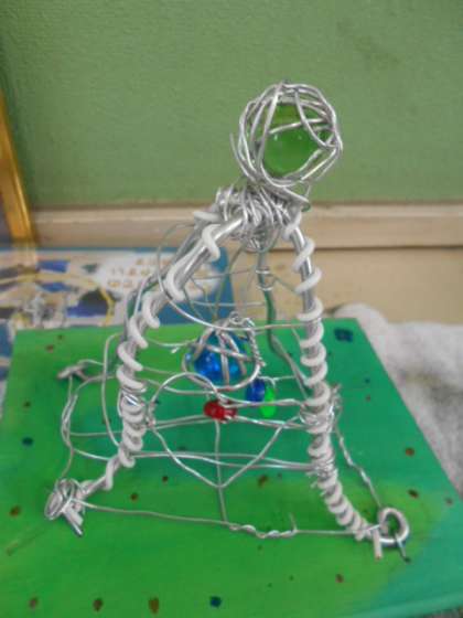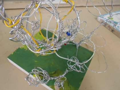 「ワイヤードリーム」というタイトルで、カラーの針金やカラービーズ、ビー玉を使って作品を作りました。