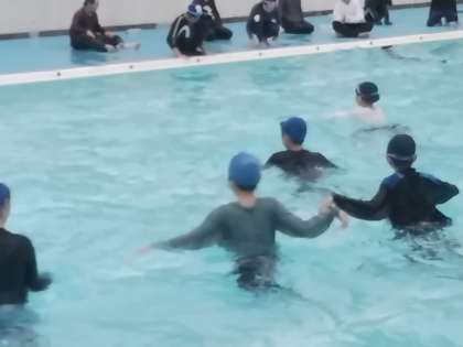 次に水の中で歩く、走る、泳ぐを経験しました。