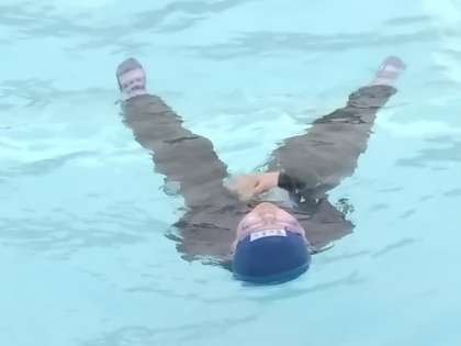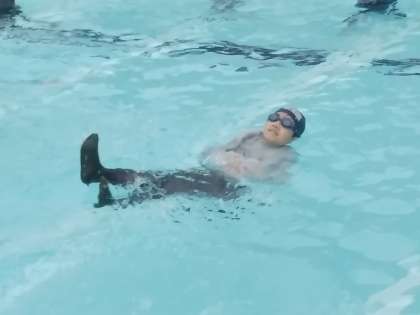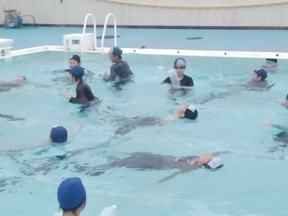 今度は、岸にいる人が水の事故に遭っている人を救助する練習をしました。今回は浮くものとしてペットボトルを用意しました。