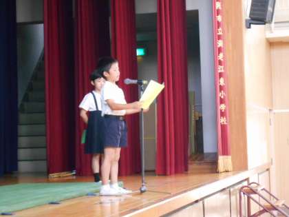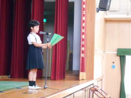 校長先生のお話の後、3年生児童の代表が「1学期の思い出」を発表しました。