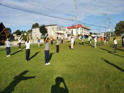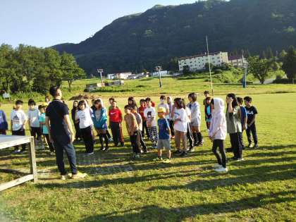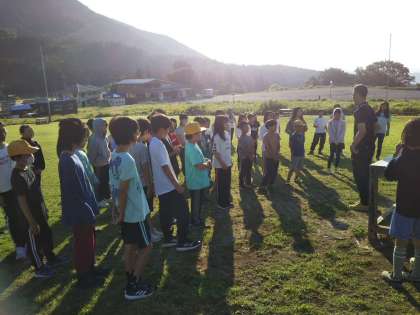 朝の集いです。聞いてみるとよく眠れた。眠れたで手を上げた子がほとんどでした。発熱や体調不良の子はいませんでした。いよいよ今日は、大阪に帰ります。