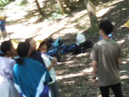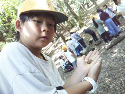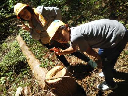 切り倒されたばかりの木の年輪や樹液を見たりやふかふかの落ち葉の感触を感じたりしました。