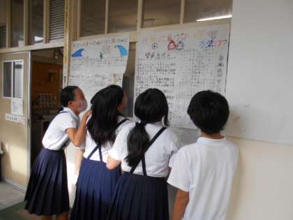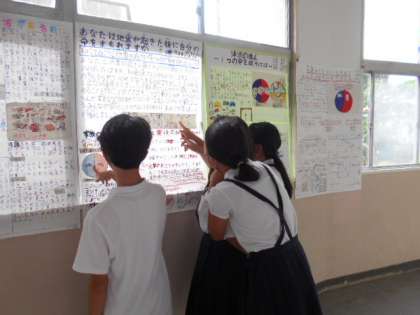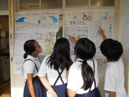 1学期に6年生が防災についてまとめたポスターを職員室前に掲示してくれました。