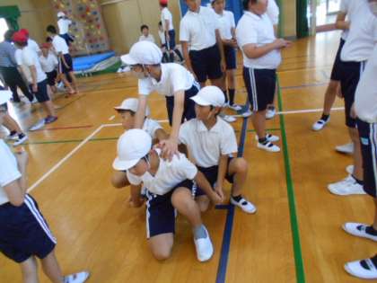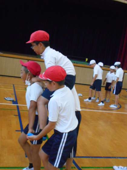 試しに騎馬を組んでいます。まだ誰がどのポジションになるかもわからないそうです。