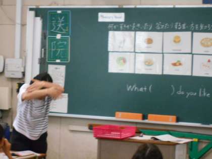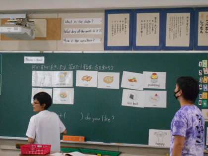 What( )do you like? I like ○〇.の表現を学習しました。( )には食べ物、動物、スポーツ・・・いろいろ入ります。