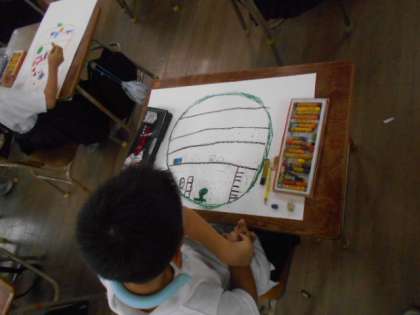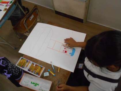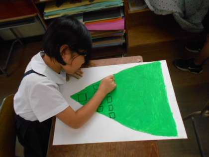 「大きくそだて びっくりやさい」というテーマで絵をかいています。