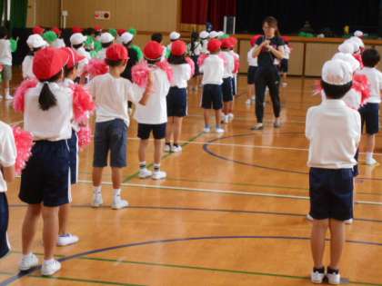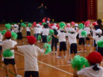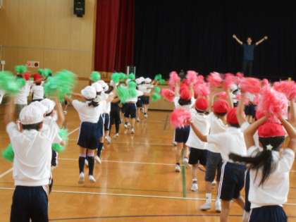 低学年のダンスの練習も、ポンポンを持っての練習になりました。