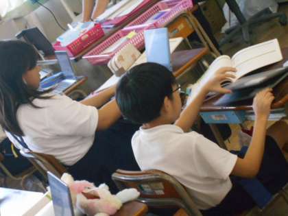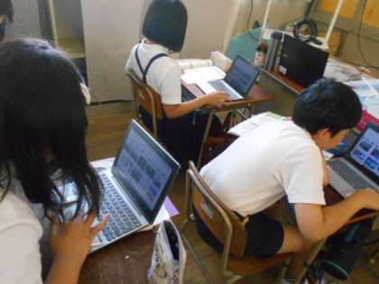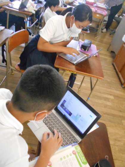 「あなたの夏休みはどうでしたか?」「私は○○へ行きました」とか「私は○○を食べました」「とても美しかったです」とか「とてもおいしかったです」などの英語表現を学習しました。