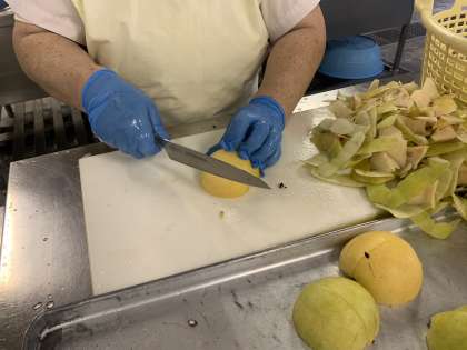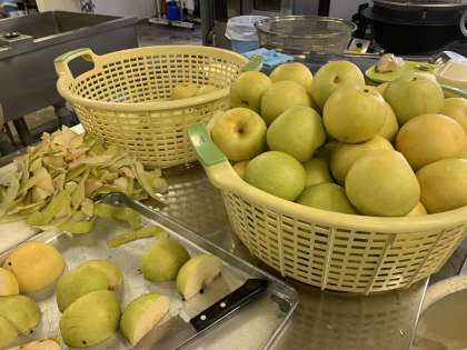 なしは一つ一つ、給食調理員さんが丁寧にむいてくれました。