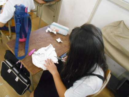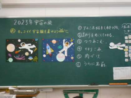 宇宙遊泳をしているのは、子どもたちで、アルミホイルを宇宙服にするそうです。