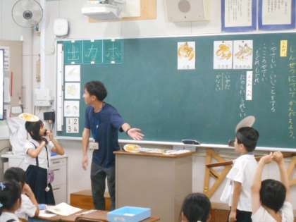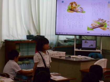 先日1−1でもご紹介しましたが、おおかみがはしのうえでうさぎと出会って通さずにじぶんが通った場面では、「おおかみはいい気持ちになっている」「おおかみはたのしいとおもっている」に対して「うさぎは、いやだとおもっている。」「かなしいとおもっている」という子どもたちの意見が出ていました。