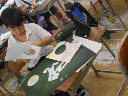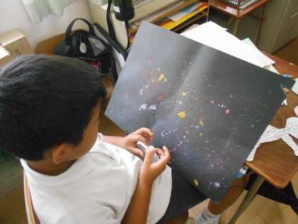 宇宙が出来上がると、宇宙飛行士のポーズを考えながら、宇宙飛行士を宇宙空間に泳がせるのです。
