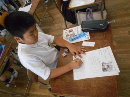 「ボール送りリレーの時はこの場所です。」とか「徒競走は一生懸命走ります。」など家族へのメッセージを書いていました。