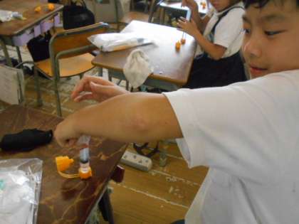 どちらがたくさん押せたでしょうか?そして、・・・空気と水を両方入れて押してみるとどうなるのでしょうか?