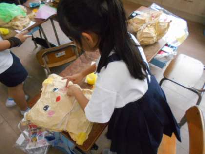 ひねったり、ひもでしばったり、ねんどのように形を変えられるので、子どもたちの自由な発想が引き出されます。学習参観で見ることができるようです。