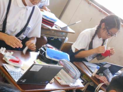 はぎれを使ったリメイクについて、インターネットで調べてヒントをもらいながら、製作していました。