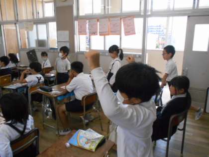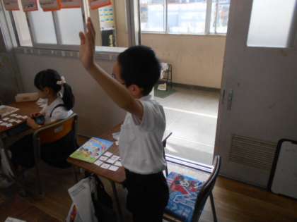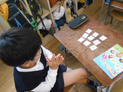 好きなアルファベットを書き込んで、友だちや先生の示す文字でビンゴをしていました。