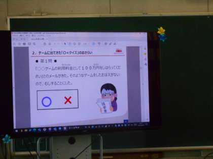 「〇〇ゲームの利用料金として100万円払ってくださいとのメールが来た。やった覚えのないゲームなので、無視した。〇か×か?」「自転車に乗っていて、歩いている人にけがをさせた、けがをした人に治療費を払う必要がある。〇か×か?」