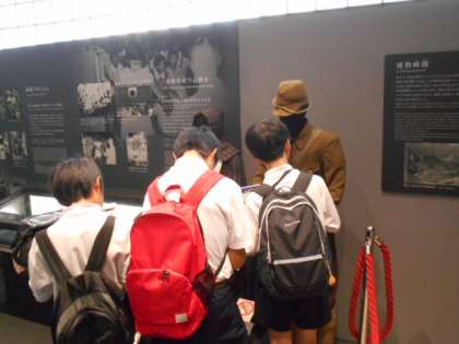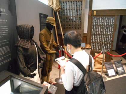 展示物には、今から75年前以上に実際に着られていた国民服や防空頭巾などが展示されていました。