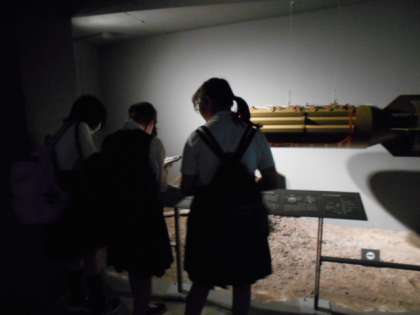 写真は、敵の飛行機に明かりが漏れないようにする工夫や爆弾の被害にあわないようにするための防空壕も再現されて入れるようになっていました。