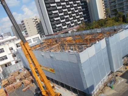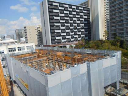 今は、2階部分に生コンが流し込まれて固まっています。もうすぐ3階部分の工事が始まるようです。