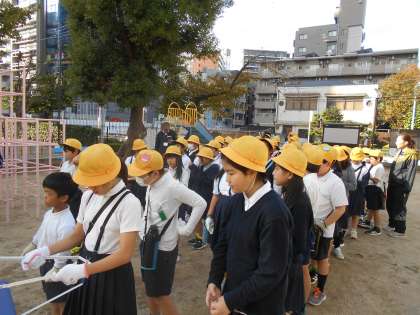 1年生は校庭や学習園、3年生は児童遊園地(2丁目)、4年生は東公園と児童遊園地(1丁目)で地域やPTAのみなさんと一緒にきれいにしました。