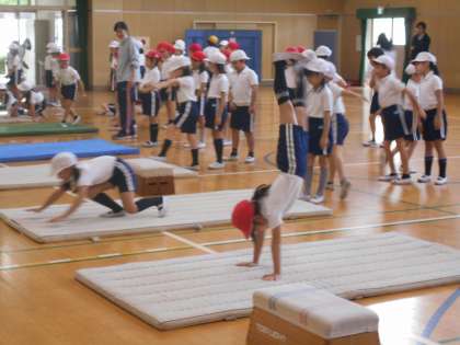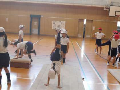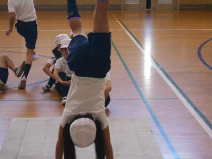 倒立のような動きや側転のような動きが少しずつできるようになってきました。
