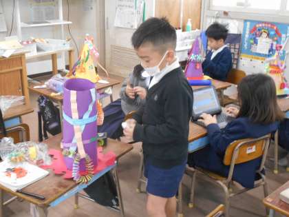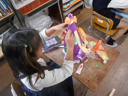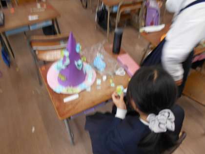 2ー2の図工です。「おしゃれなぼうし」を作っています。